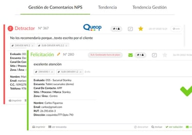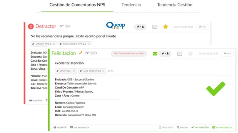 Queop cuenta con un CRM para que puedas administrar y gestionar el feedback de tus clientes, cada uno con su ticket de interacción.