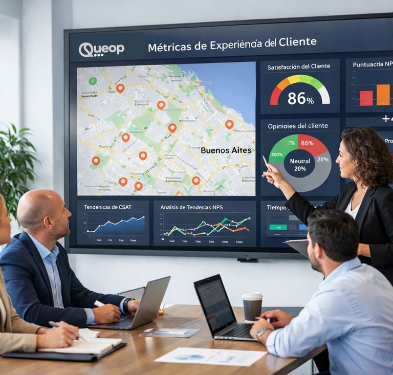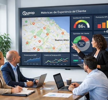 Con Queop centralizás el feedback, comparás el desempeño entre sucursales y ayudás a mejorar el NPS, CSAT y CES de toda la red.